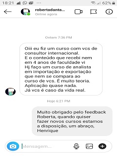 Você precisa de experiência prática em comércio exterior? Então vamos fazer agora a sua inscrição Mensalidade: (R$ 350,00 por mês x 3 meses) no boleto ou R$ 900,00 à vista com R$ 150 de desconto O aluno tem um professor particular com atendimento diário e ilimitado pelo Whatsapp! |